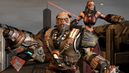 《雷神之锤4》由 Raven Software 开发,并于2005年发售,基于升级后的 id Tech 4 引擎技术打造(该引擎也曾用于《毁灭战士3》)。游戏单人战役延续了《雷神之锤2》的故事线,玩家将继续对抗斯特罗格(Strogg)外星势力,并扮演海军陆战队员马修·凯恩,加入“犀牛”小队展开行动。